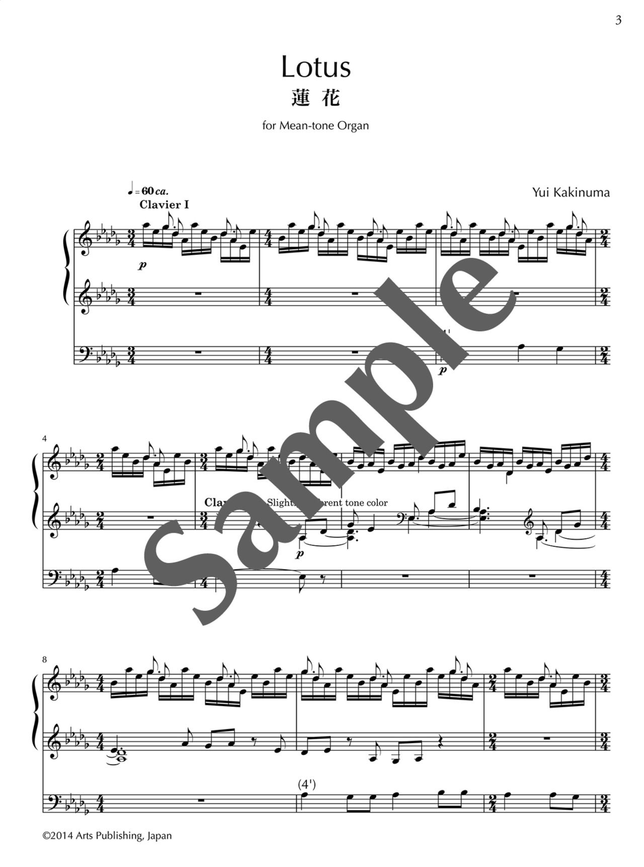 This piece was composed for Mean-tone instrument, but it is possible to be performed by any other types of temperament.
