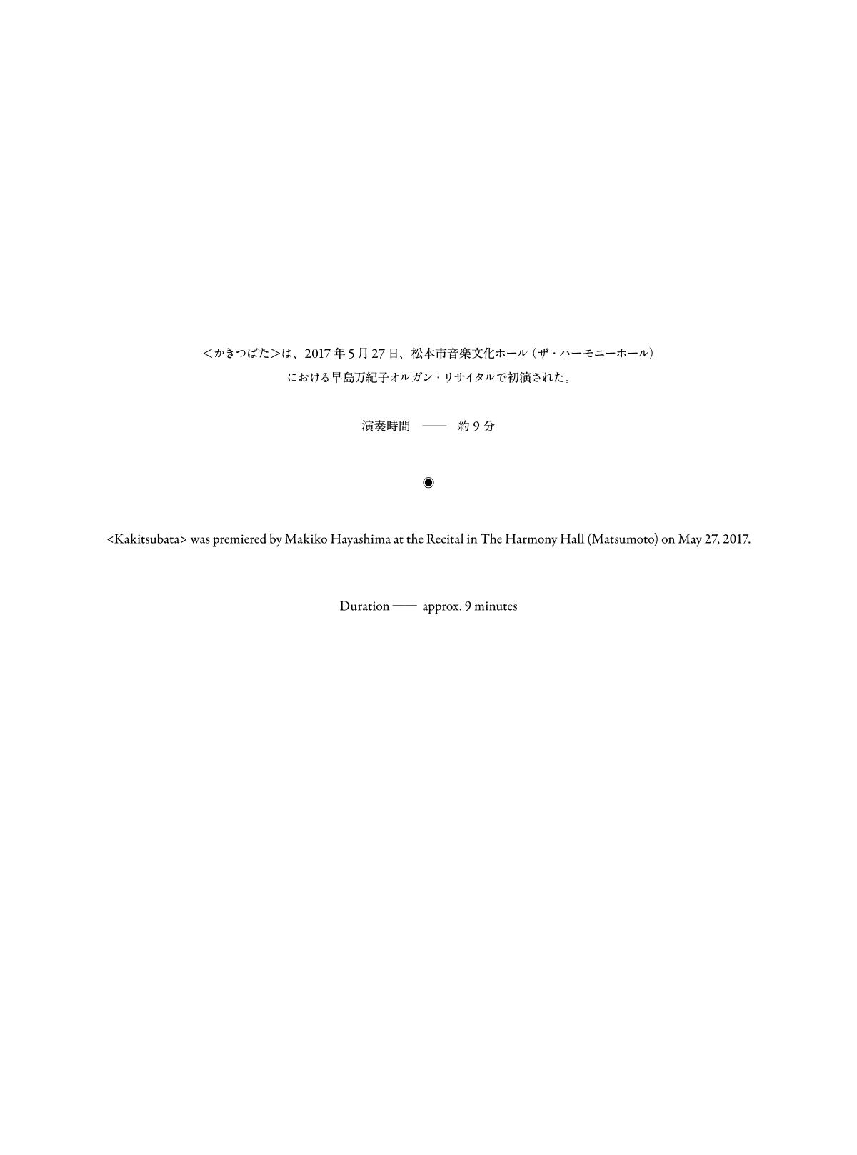 Cantus firmus ”mi-fa♯-mi-do-mi” is corresponded to 5 syllables of Ka-ki-tsu-ba-ta, and it is recalled the beginning of the tune of “Veni Creator Spiritus”.